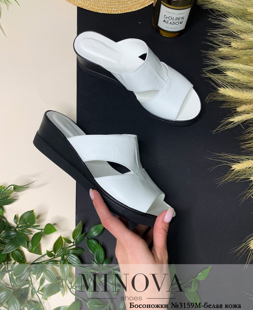 Кожаные шлепанцы на танкетке. Шлепанцы из цельного полотна оформлены вырезами по бокам.