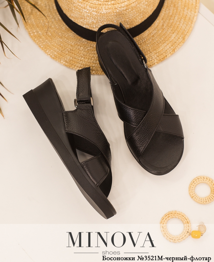 Элегантные кожаные босоножки с застёжкой-липучкой на щиколотке, изготовлены из мягкой натуральной кожи, представлены на невысокой удобной танкетке. Носок и задник открытые.