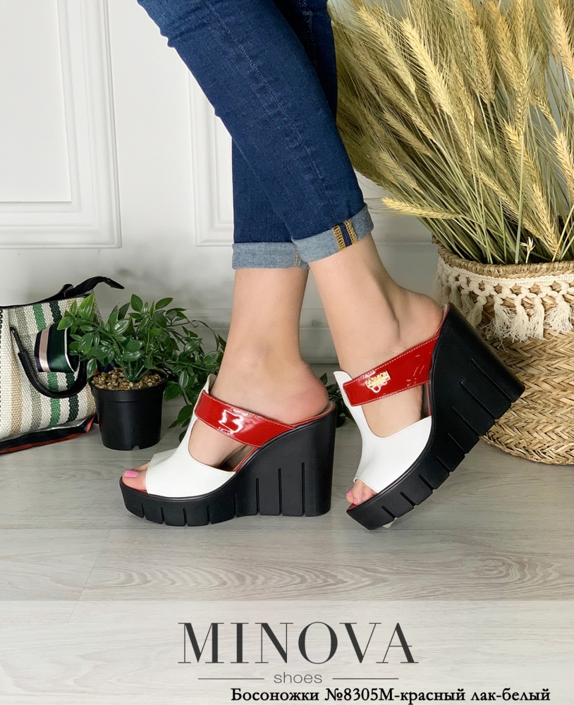 Кожаные мюли на высокой фактурной танкетке. Верхняя часть состоит из фигурно вырезанного кожаного полотн