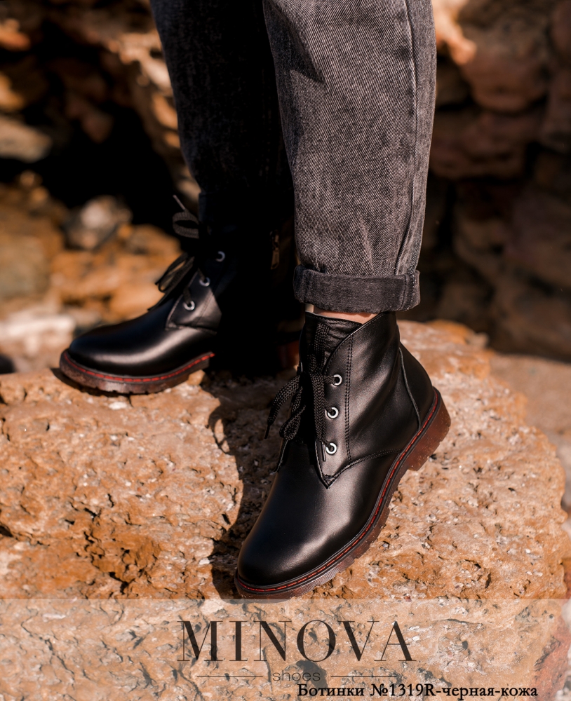 Стильные ботинки с утеплением, изготовлены из натуральной кожи. На подъёме - шнуровка, под ней - язычок. Отверстия шнуровки укреплены люверсами. На внутренней стороне - рабочая молния. На заднем пояске - петелька. Подошва полупрозрачная, гибкая, с поперечным рифлением. Прошита контрастной строчкой.