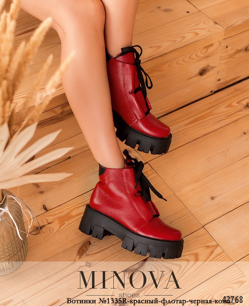 Черевики №1335R-червоний-флотар-чорна-шкіра