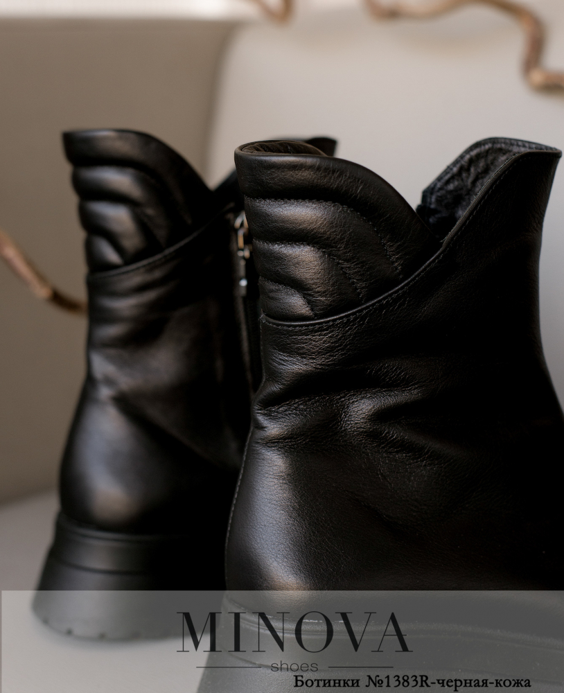 Кожаные ботинки с массивной подошвой с небольшим каблуком отлично сочетаются с объемным свитером, легкими платьями и любимыми джинсами. Модель застегивается на змейку, вшитую сбоку на внутренней части ботинок.