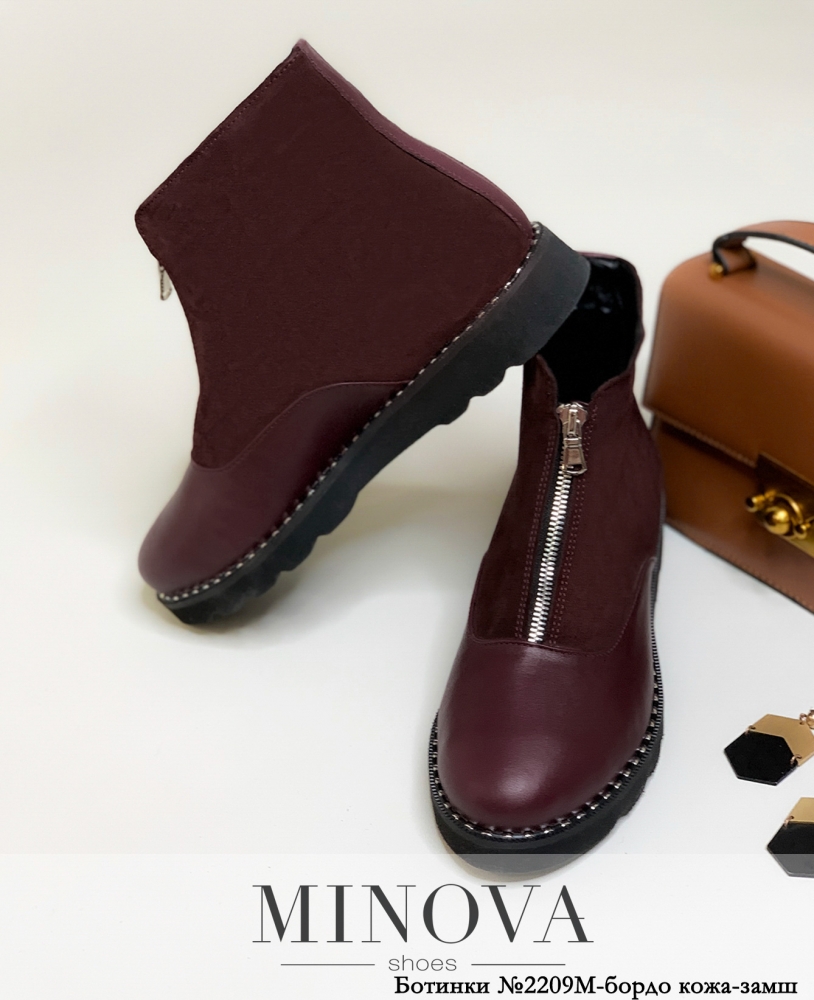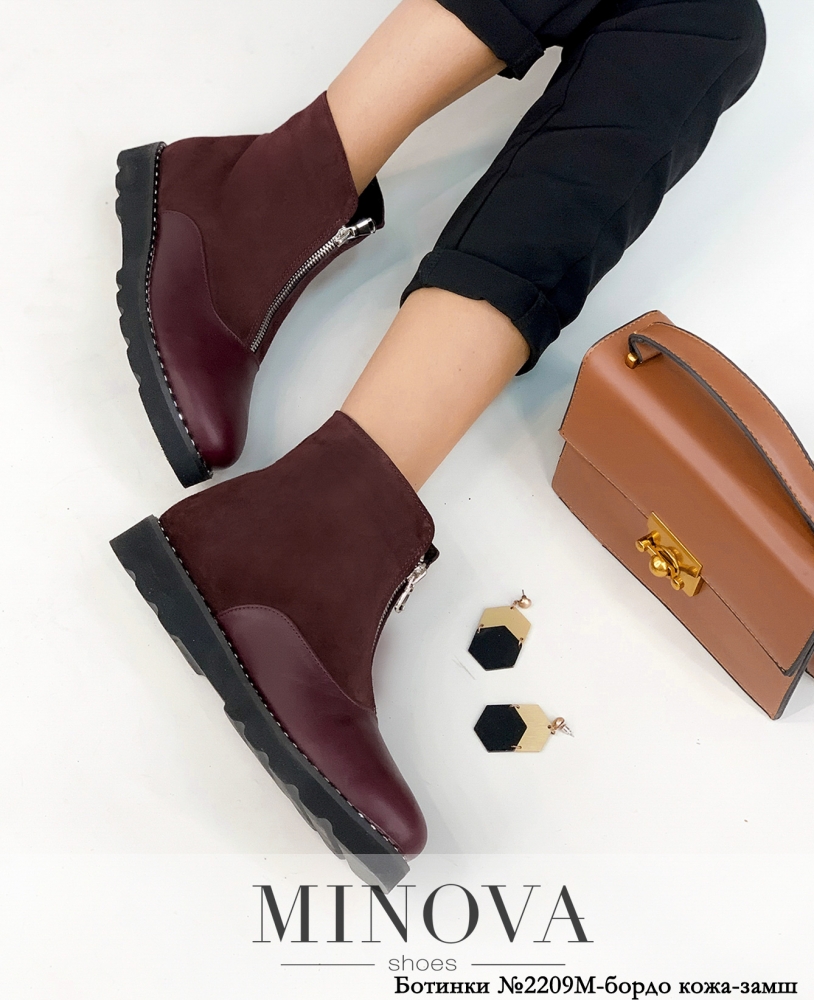 Черевики №2209М-бордо шкіра -замш