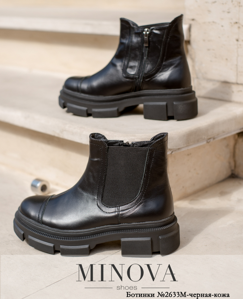 Стильные высокие ботинки-челси из натуральной мягкой кожи с отрезным носком. По внутренней стороне - рабочая молния, по внешней - резинка. Подошва плотная, высокая, с фигурным рифлением.