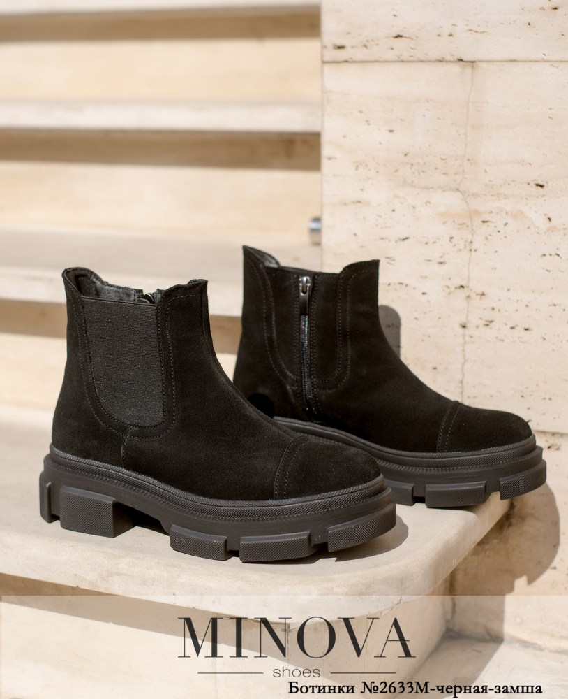 Стильные высокие ботинки-челси из натуральной мягкой кожи с отрезным носком. По внутренней стороне - рабочая молния, по внешней - резинка. Подошва плотная, высокая, с фигурным рифлением.
