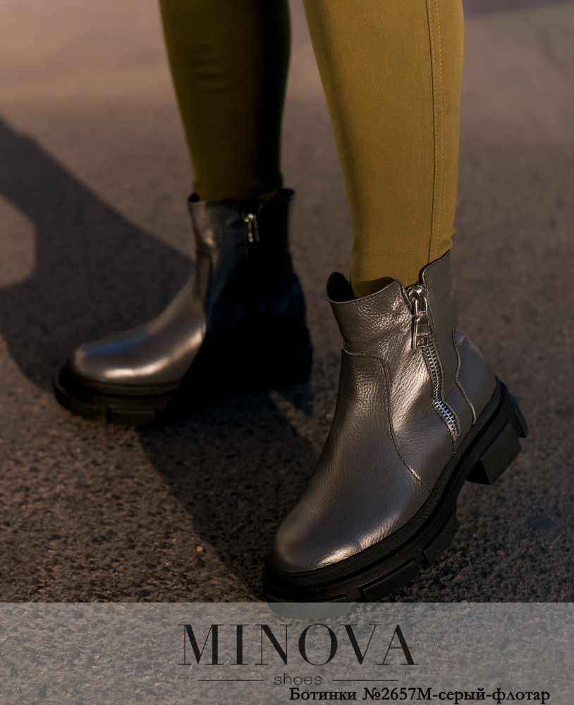 Стильные высокие ботинки из натуральной мягкой кожи, с двумя молниями. По внешней стороне - декоративная, по внутренней - рабочая. Носок и задник отрезные. Подошва плотная, высокая, с фигурным рифлением. Ботинки утеплены.