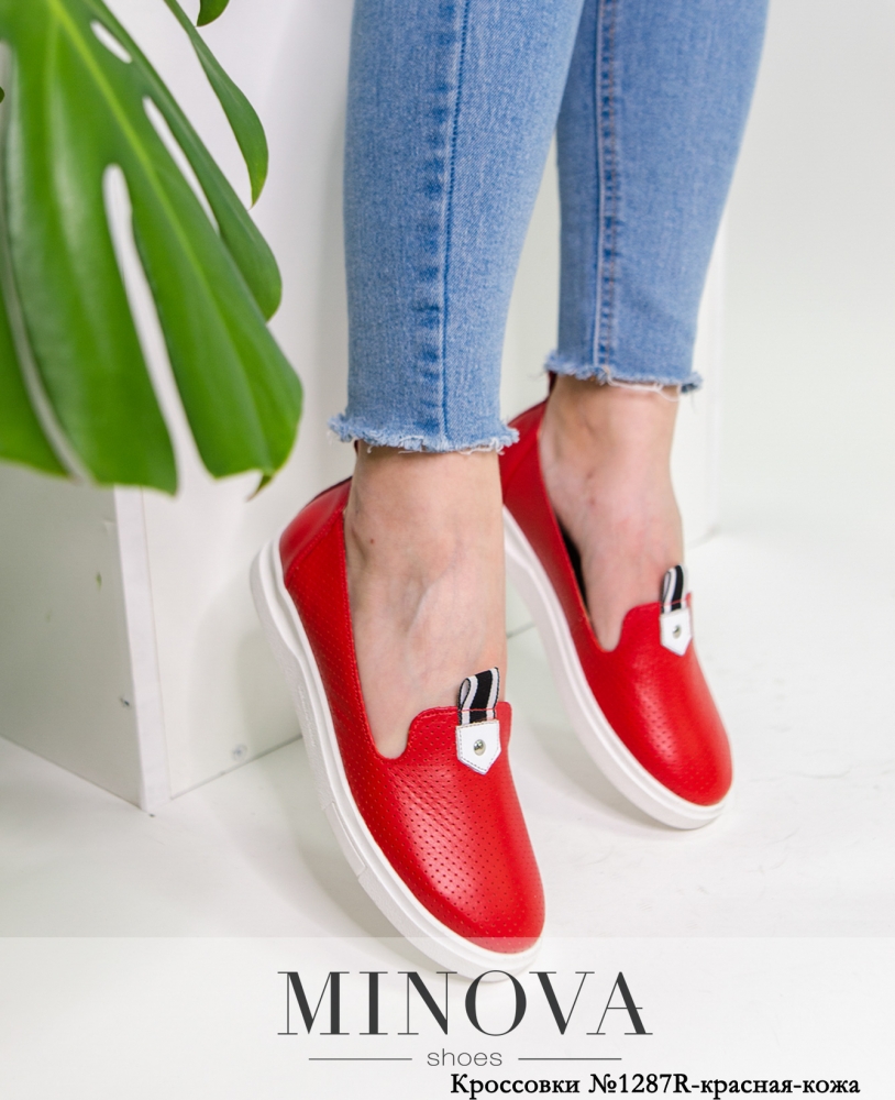 Кеды №1287R-Красная-Кожа