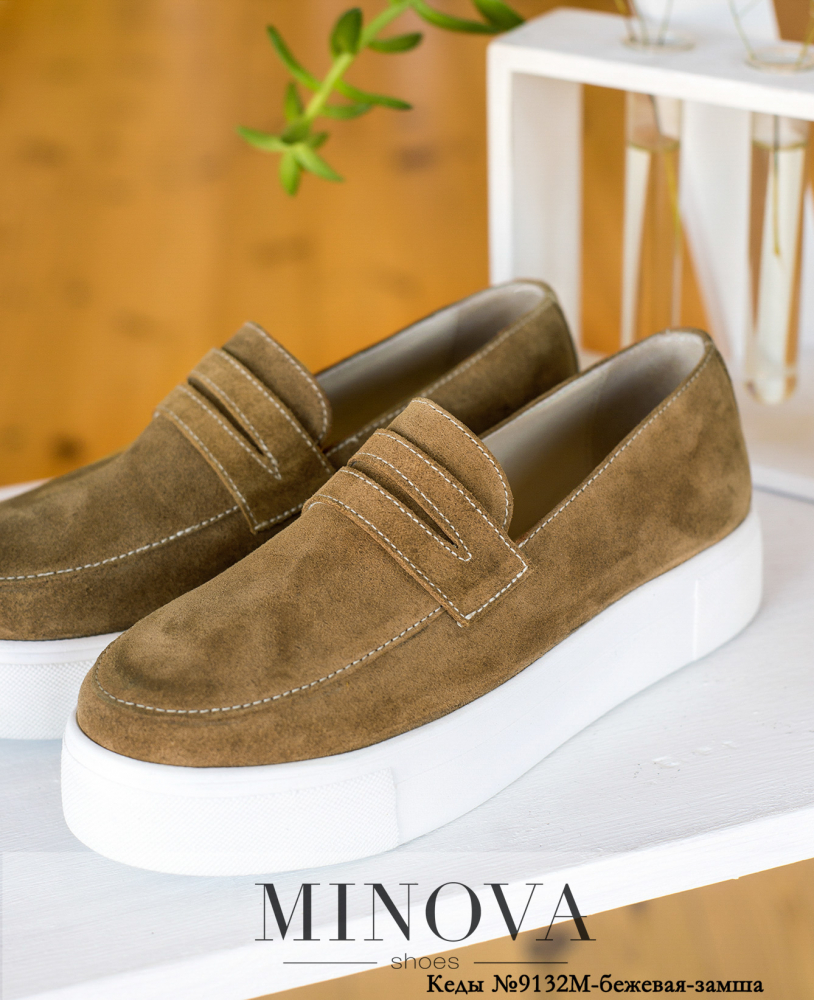 Элегантные кеды-мокасины из натуральной кожи, без застёжек, через язычок перекинут декоративный ремешок с разрезом. Подошва плотная, гибкая, высокая.