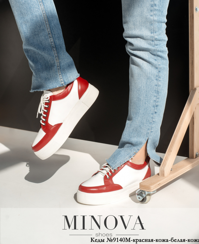 Кеди №9140М-червона-шкіра-біла-шкіра