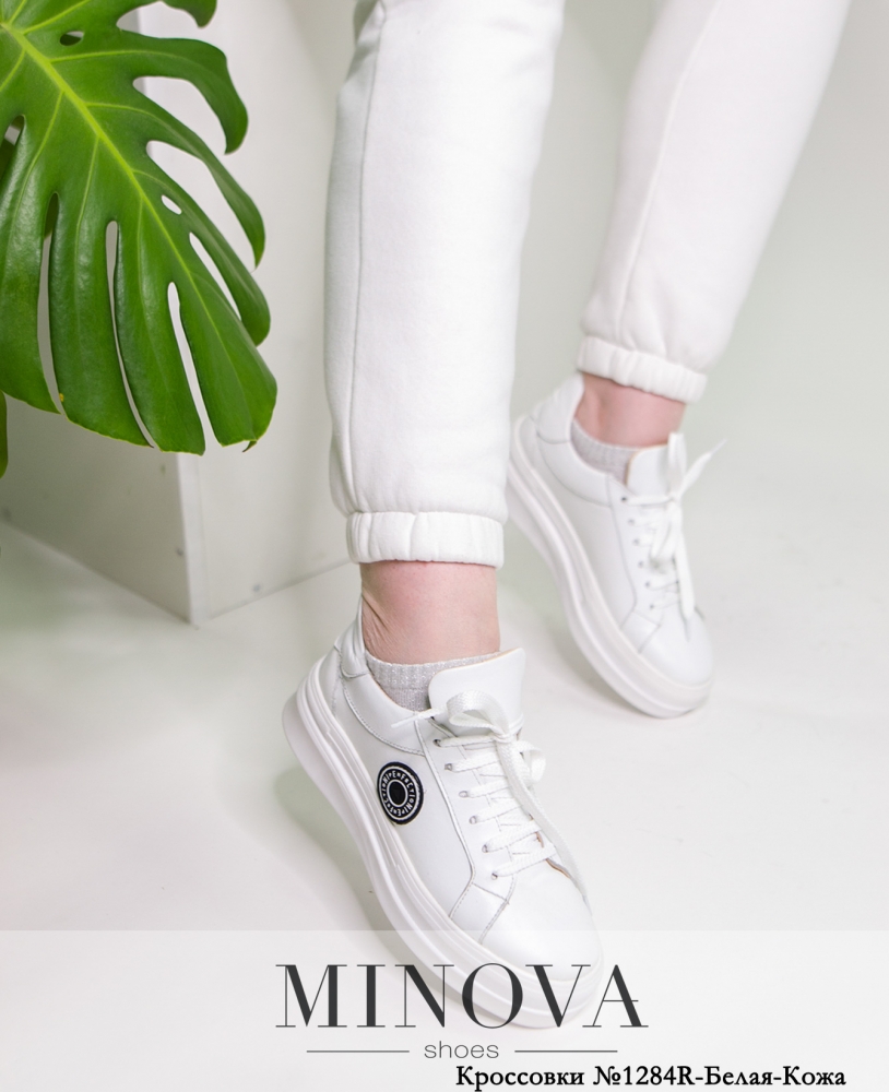 Кроcсовки №1284R-Белая-Кожа