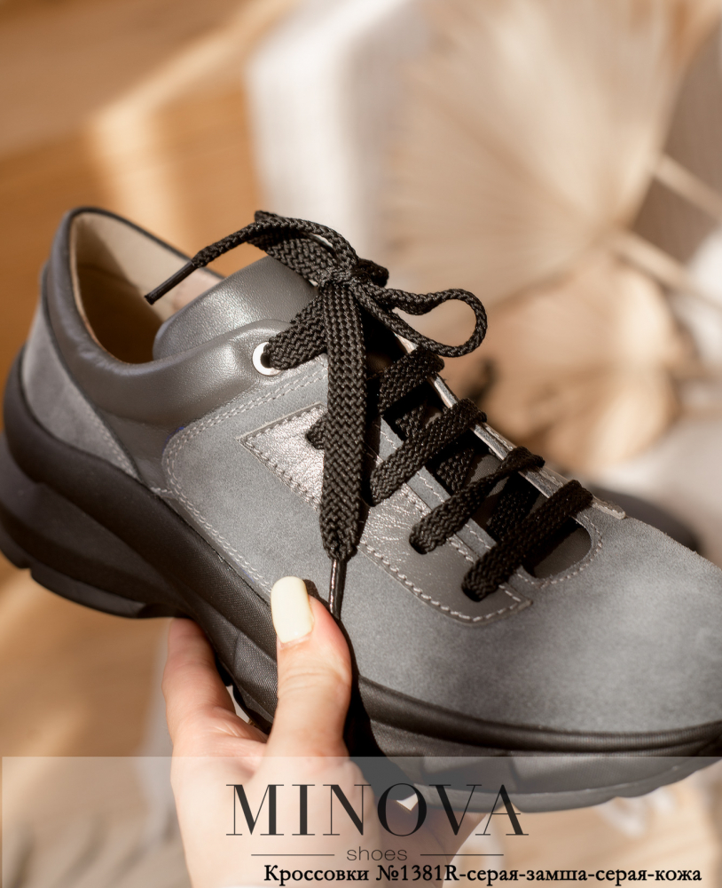 Кросівки №1381R-сіра-замша-сіра-шкіра