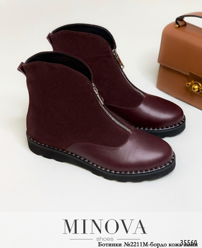 Удобные, мягкие и утеплённые изнутри цигейкой ботинки из новой коллекции женской обуви Minova выполнены из натуральной мягкой кожи. Основная часть отличается от носка: в большинстве случаев это сочетание замши и гладкой кожи, но есть и варианты с кожей «под рептилию» и лака, и другие варианты. Вставка на носке чуть расширена до середины подошвы, что особенно его укрепляет и делает эту обувь практичной. Спереди на подъёме, от носка до штаферки – рабочая змейка, штаферка скруглена. Подошва снизу мелкоребристая, каблучок едва заметен, ботинки устойчивы на любой поверхности. Такая модель позволит создать стильный городской образ с джинсами или костюмом.