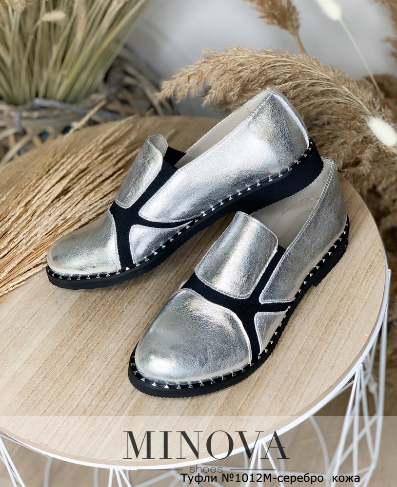 Легкие туфли с резиновыми вставками, которые точно обратят на себя взгляды окружающих! В новом пополнении каталога женской обуви Minova данная модель представлена в четырёх вариантах: чёрная лаковая кожа, светло-серебристый, с оттенком никеля и с оттенком темной серебряной патины. Верх – комбинированный, от центра к краям расходятся резиновые вставки, позволяющие обуви идеально сидеть на ноге, не используя шнуровку или застёжки. Подошва чёрного цвета, каблук невысокий, рант подошвы декорирован металлическими заклёпками в виде треугольников. Широкий выбор цветовых решений позволяет сочетать эту модель с разным гардеробом.