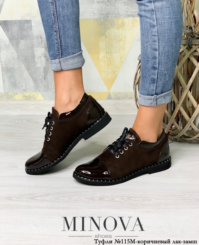 Аккуратные и стильные ботинки из новой коллекции женской обуви Minova понравятся девушкам, которые предпочитают оригинальную обувь. Ботинки из натуральной кожи, с небольшим каблучком на подошве, носок и задник лакированные, а язычок – из блестящей кожи с лакированной вставкой, украшенной металлической пчёлкой. Штаферка (по верхней части ботинка) тоже закреплена лакированной кожей. По основной части – вставка из блестящей кожи или матового замша. Шнурки широкие, люверсы – металлические. По ранту подошвы – блестящие треугольные заклёпки. Стельки мягкие, подошва прорезиненная. Такие ботинки хорошо подойдут для создания городского стиля. В каталоге вы найдёте коричневый, красный и синий лакированные варианты с замшевыми вставками, а также чёрный с серебром.