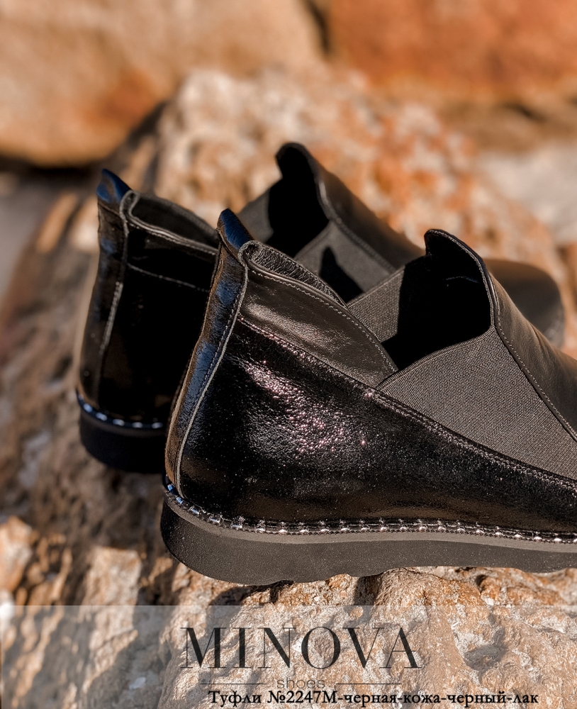 Оригинальные кожаные туфли в стиле челси, с треугольными вставками резинки по бокам. Носок и задник высокие, вырез по бокам фигурный. Подошва с декоративной металлической окантовкой. Подошва с поперечным рифлением. На заднем ремне - петелька. Туфли утеплены.