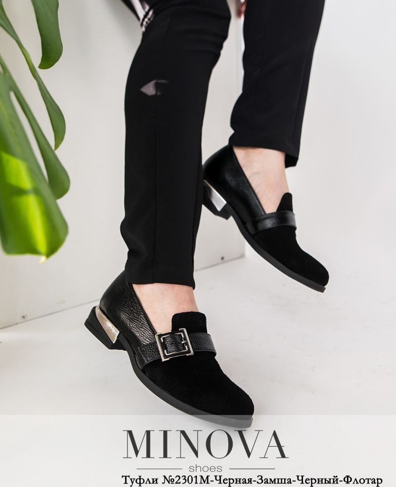 Туфли №2301М-Черная-Замша-Черный-Флотар