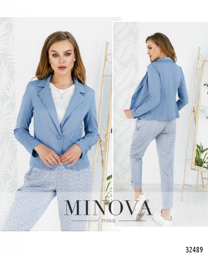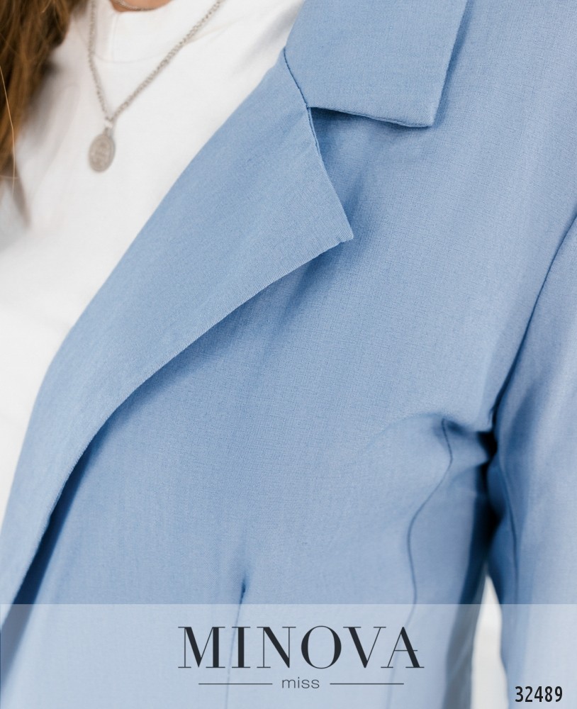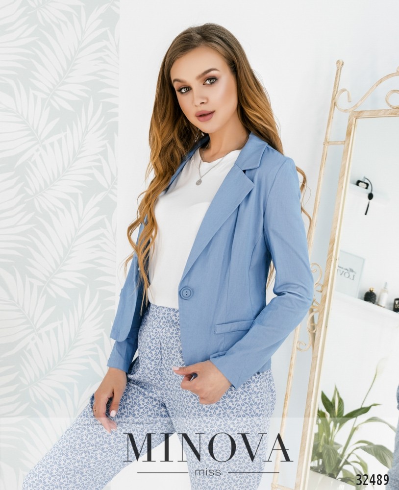 Деловой стиль приходится соблюдать и летом. Но как сочетать это с жарой и влажностью? Minova предлагает отличный вариант – лёгкий пиджак из ткани, которая будет хорошо пропускать воздух и будет приятна к телу. Пиджак двубортный, с декоративными клапанами, застёгивается на одну пуговку. Рукава при желании можно подвернуть. Силуэт приталенный, поэтому будет хорошо смотреться на девушках с фигурой типа «песочные часы» или «груша»: когда бёдра чуть шире плеч, но талия чётко выражена. Легко стирается и быстро сохнет.