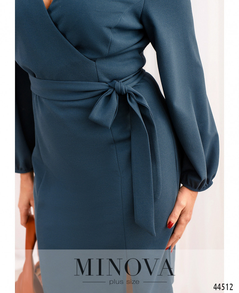Нежное платье батал с подшитым на запАх лифом, рукава широкие, на манжетах сужены и подшиты на резинки. Застёжка - вшитая по спинке молния. На груди длинные вытачки. Спереди сбоку на подоле небольшая шлица. Карманов нет.