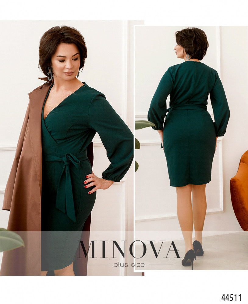 Нежное платье батал с подшитым на запАх лифом, рукава широкие, на манжетах сужены и подшиты на резинки. Застёжка - вшитая по спинке молния. На груди длинные вытачки. Спереди сбоку на подоле небольшая шлица. Карманов нет.