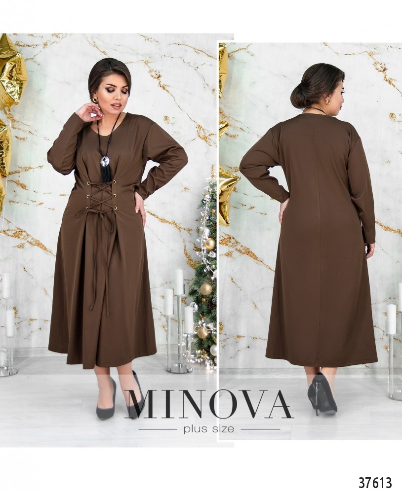 Оригинальное платье батал с шнуровкой спереди, V-образным вырезом горловины, без застёжек и карманов. Рукава без манжет, сужаются к запястью. В комплекте подвеска.