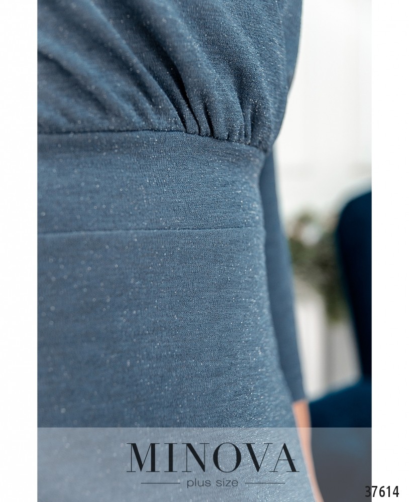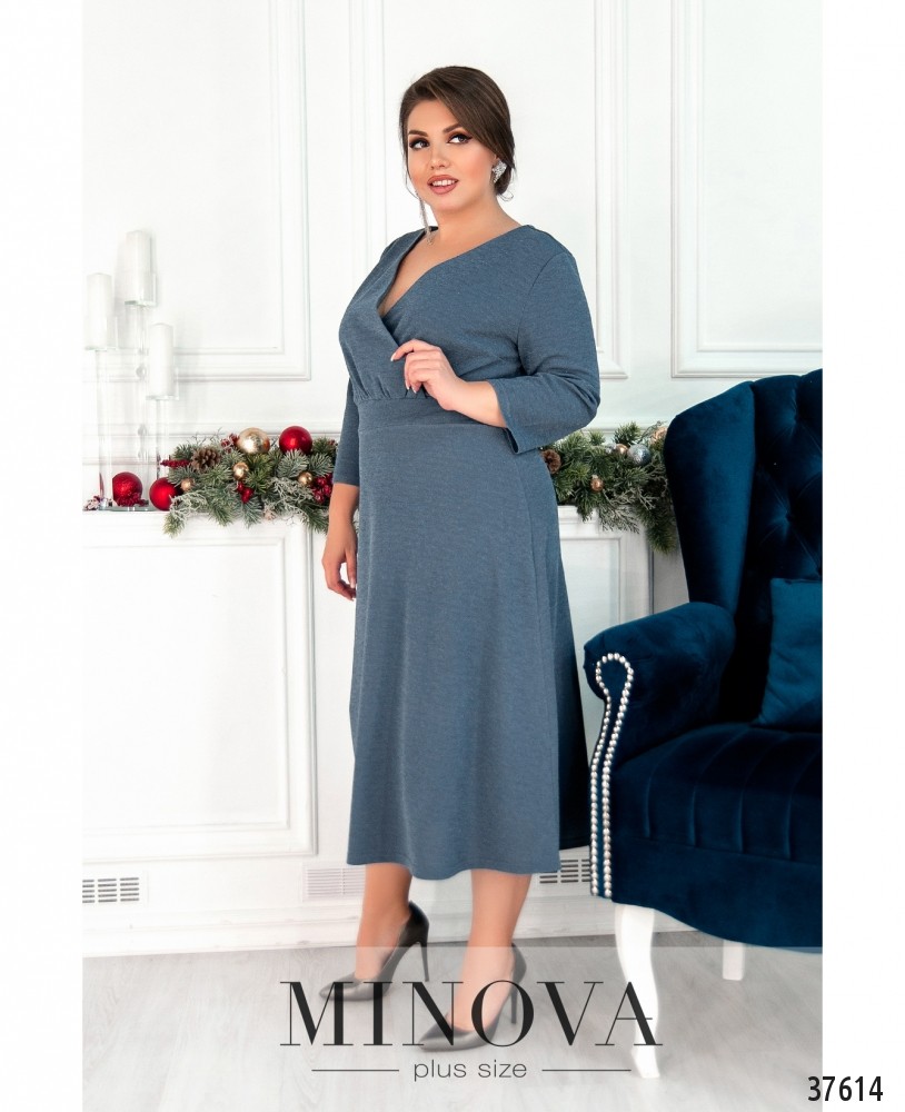 Элегантное минималистичное платье без карманов и застёжек, с подшитым к лифу и расклешённым подолом. Лиф подшит на запАх. Ткань с люрексом, рукава без манжет, на груди вытачки.