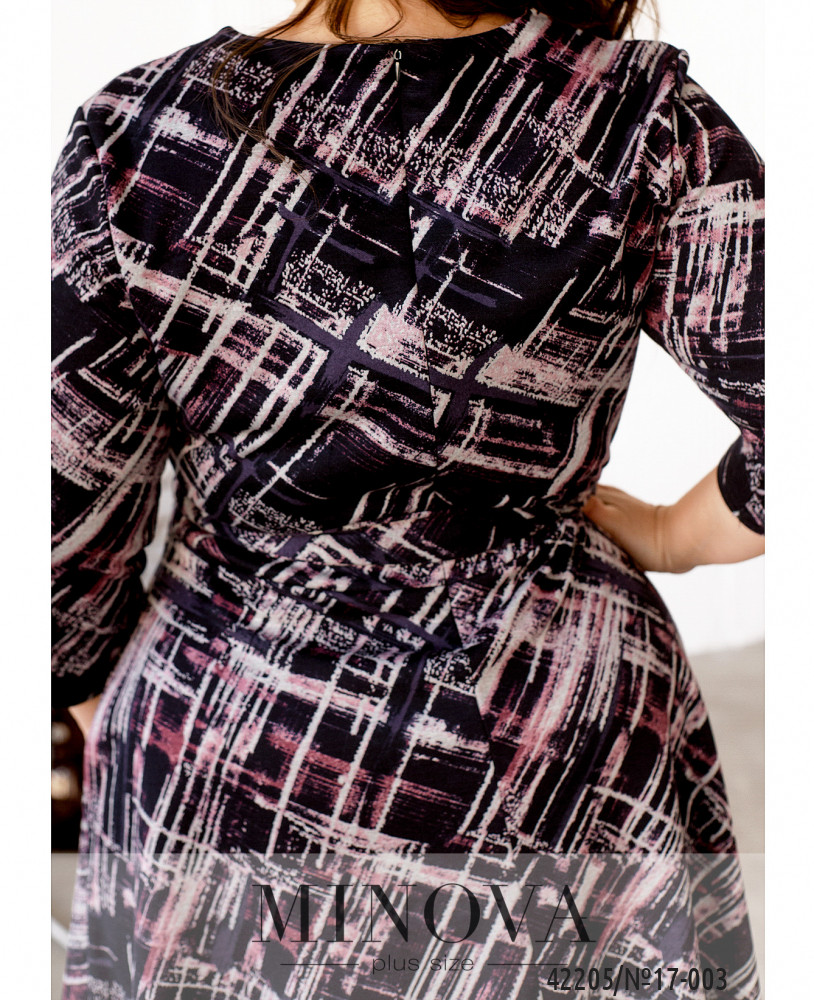 Яркое платье батал с врезными карманами по бокам, застёгивается на молнию, вшитую по спинке. Рукава без манжет, в комплекте пояс. Подол подшит к лифу и расклешён.