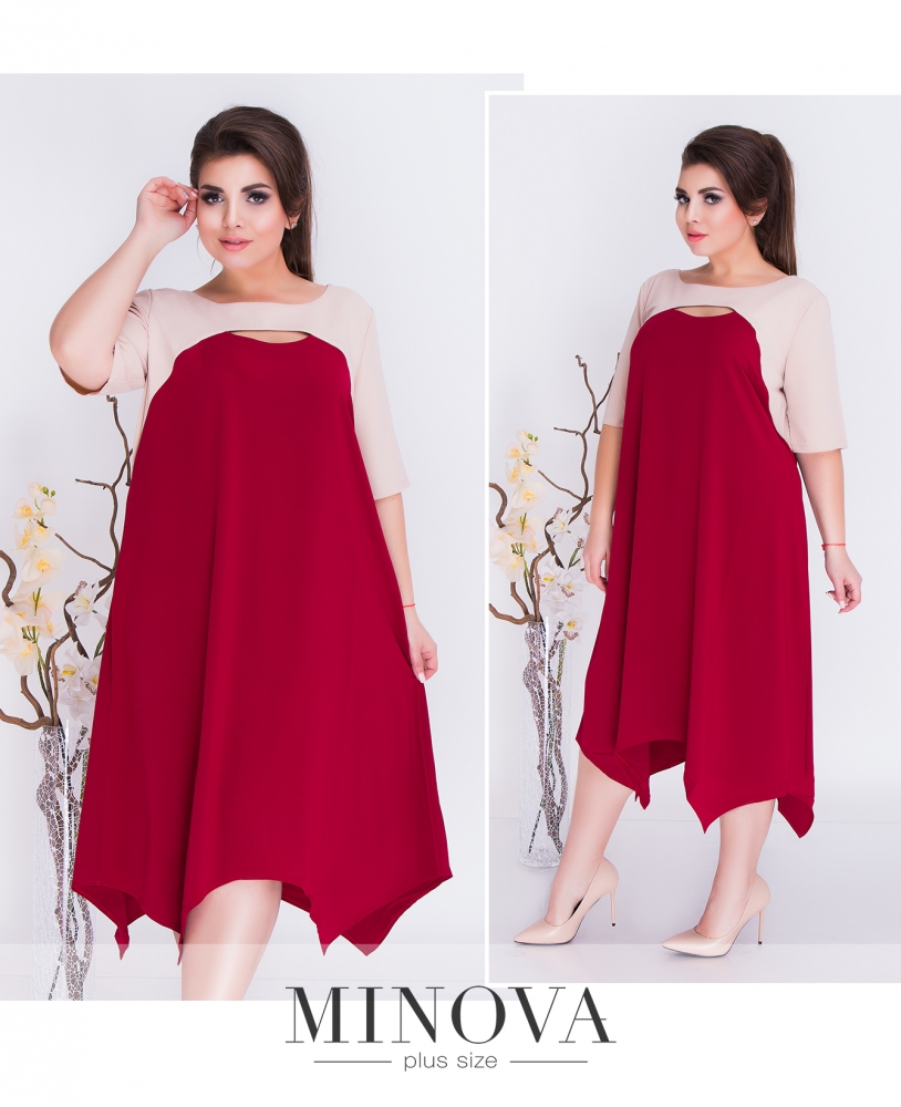 ассиметричным подолом и комбинированными отрезными рукавами. Сочетание отрезной
