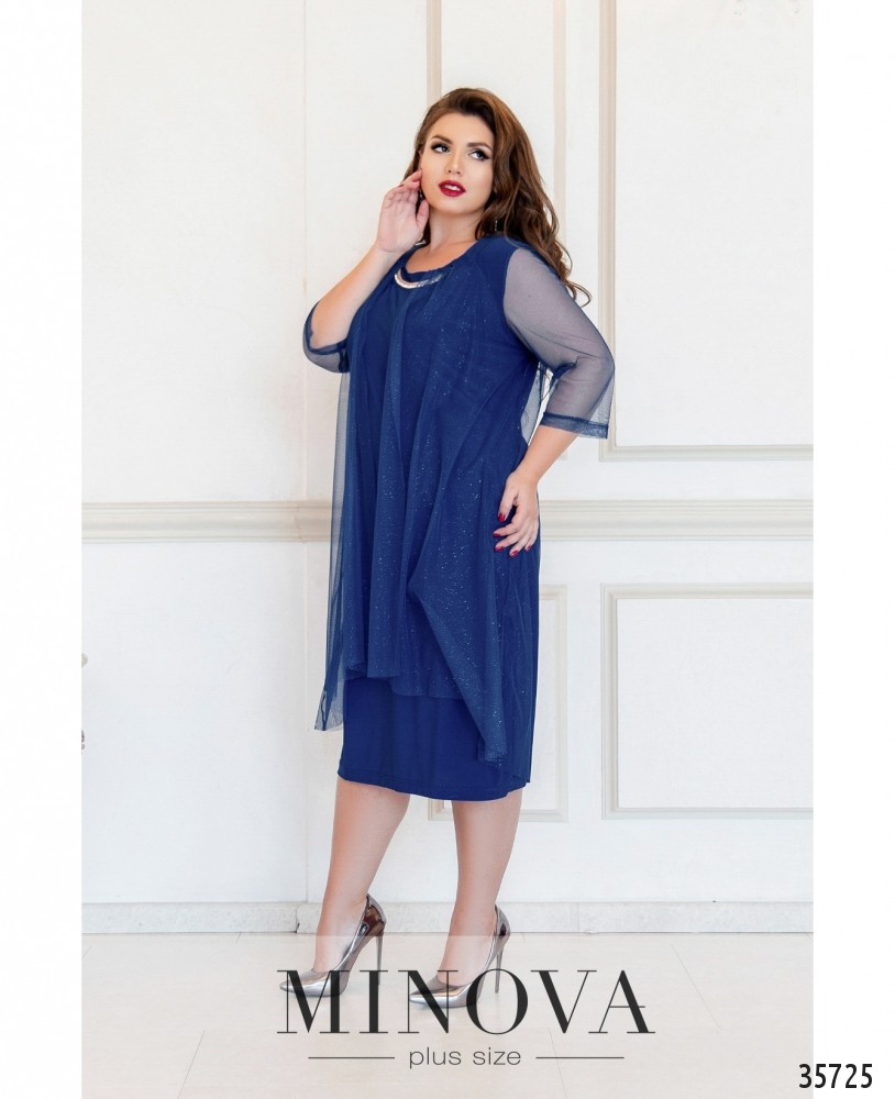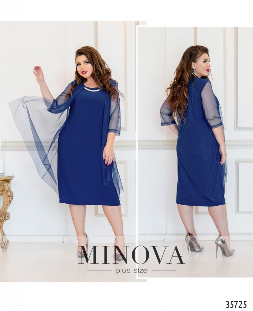 Давно искали нарядное платье для праздника или вечеринки? Обратите внимание на модель платья батал от Minova – оно прекрасно и своим фасоном, и цветом. Платье двуслойное, сверху – нежный шифон, рукава полностью из шифона, с небольшими плотными манжетами, длиной ¾. Снизу – мягкая, приятная к телу подкладка. Вырез горловины широкий, глубокий, полукруглый, на вырезе – очень элегантное украшение с камушками. Застёжек и карманов нет. Платье свободного кроя, будет хорошо сидеть на фигуре типа «яблоко» или «груша». Лучше носить с туфельками на танкетке или высоком каблуке.