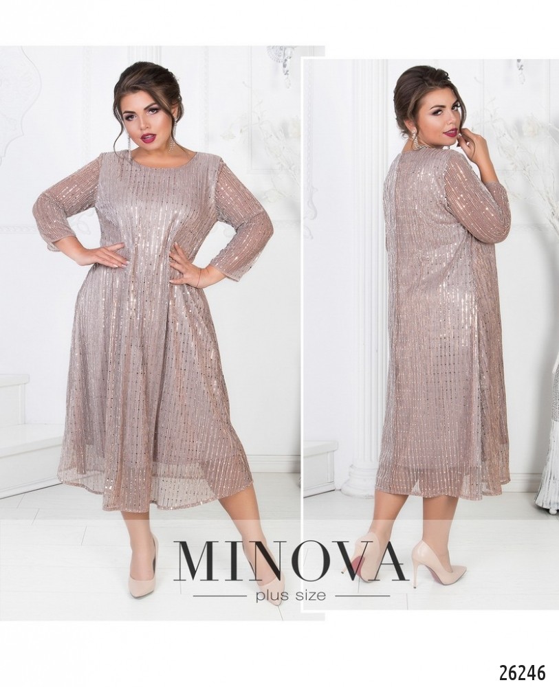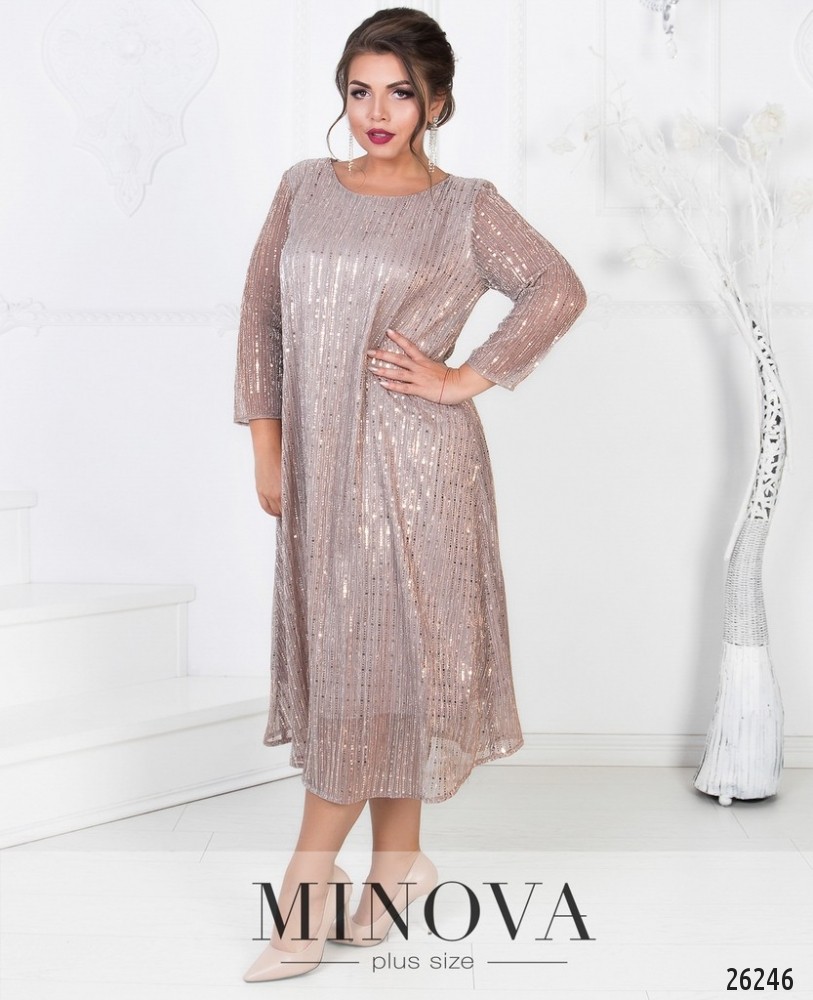 Блистайте и покоряйте! Эффектное блестящее двухслойное платье А-силуэта с полупрозрачными рукавами. Платье на однотонной атласной непрозрачной подкладке. Верхний слой представлен полупрозрачной гофрированной сеткой с накатанными блестящими элементами. Платье без молнии.