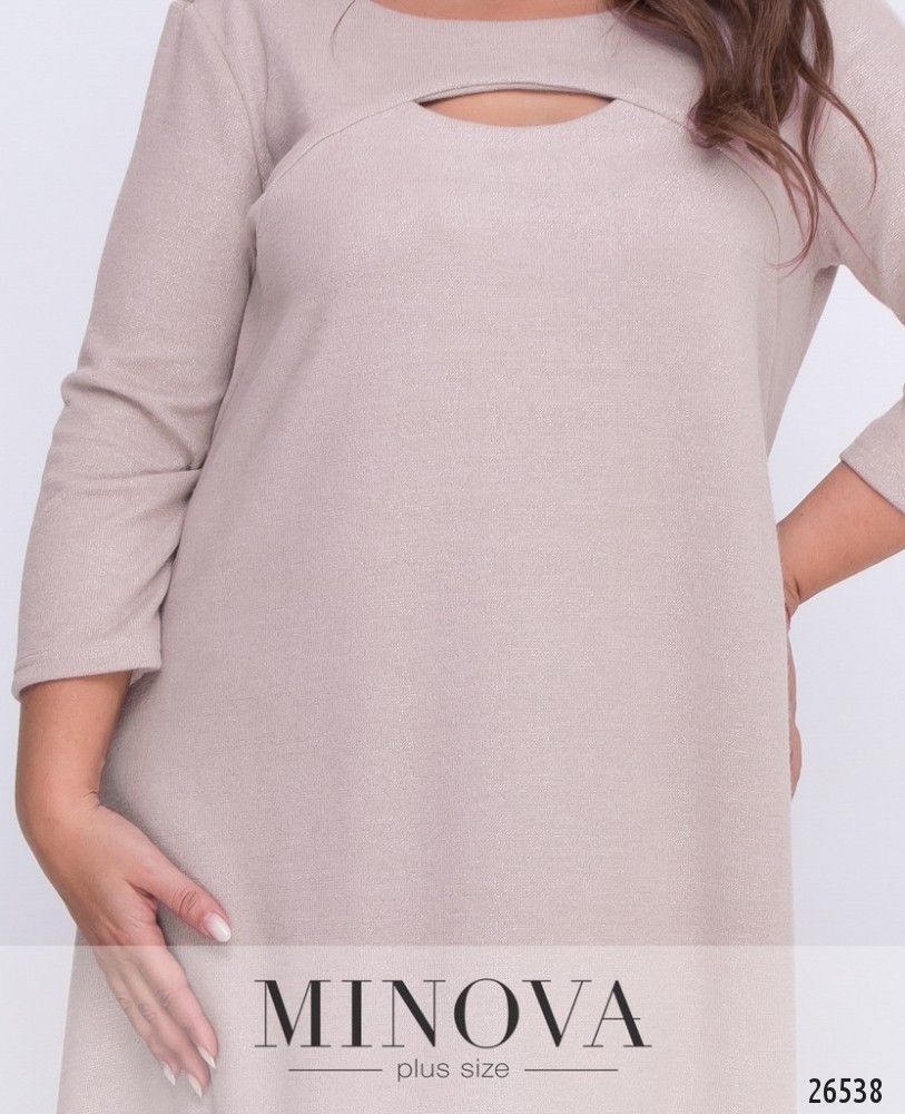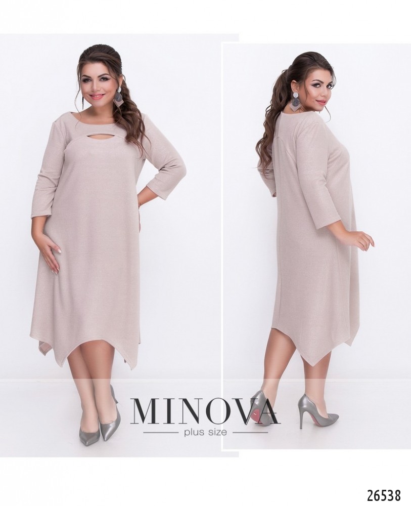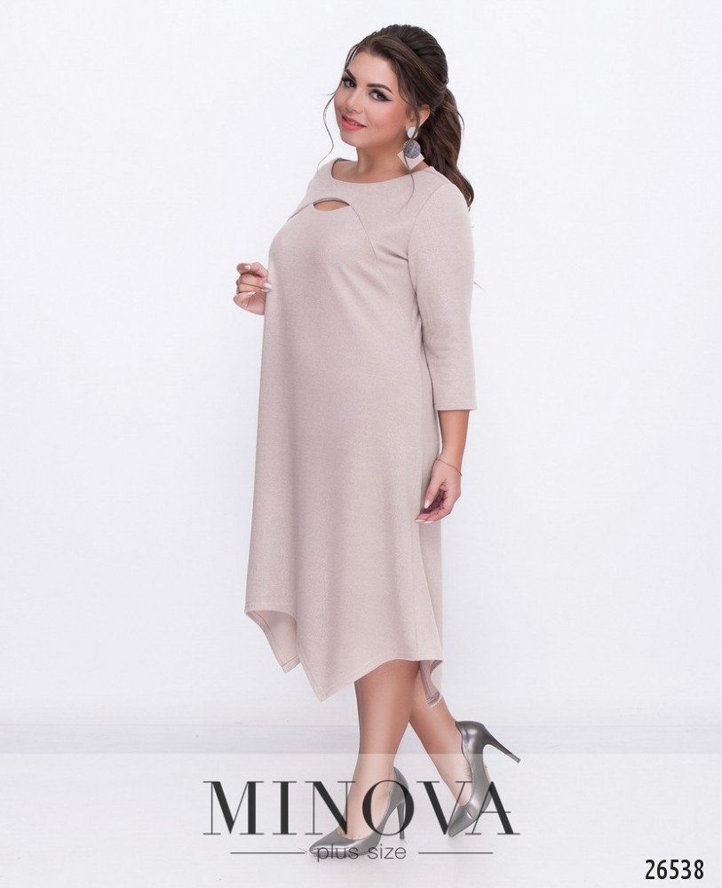 Расклешенное платье-миди А-силуэта с ассиметричным подолом из ткани с легким мелким блеском. Сочетание отрезной линии рукавов и платья образуют необычное декольте. Изделие без молнии и карманов.