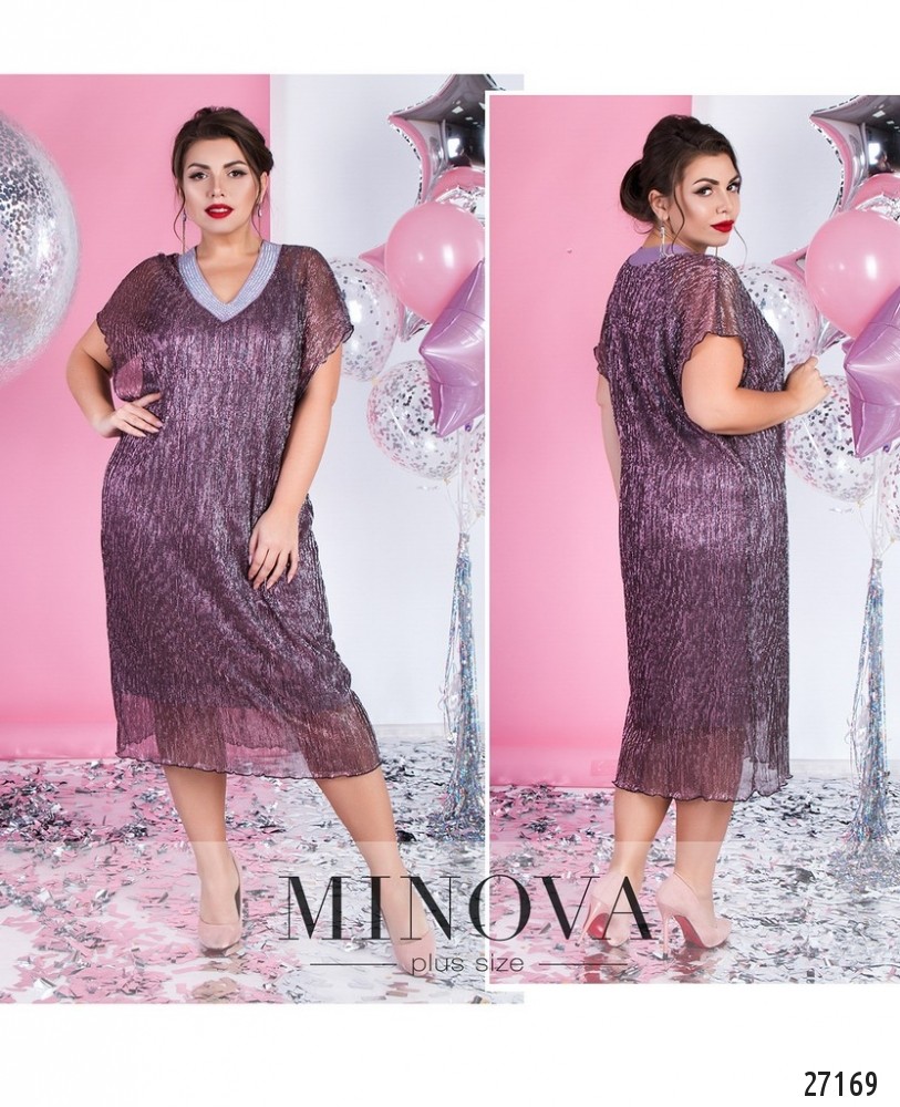 56 р-р: длина платья 115см, длина рукава 25см, ОГ – 116см, ОТ – 116см, ОБ – 118см.