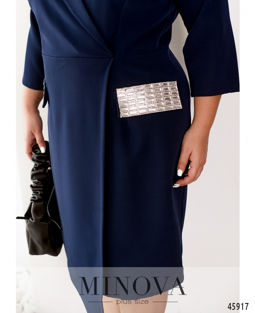 В женственном платье-миди приталенного силуэта, подшитом на запах, вы будете очаровательны как в офисе, так и на вечеринке или празднике. Эта модель дополнена воротником с лацканами, рукавами 7/8 без манжет и сияющими накладными клапанами без карманов. Изюминку добавляет ассиметричный подол и декоративные складки-защипы на лифе. Платье застегивается на змейку, вшитую по спинке.