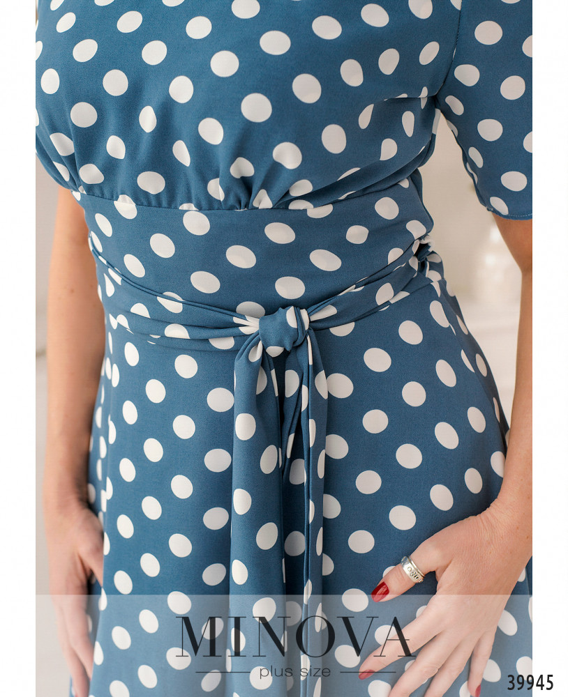 Платье миди на запах с короткими рукавами и расклешенным подолом. На спинке платье запахивается внахлест,а длинный пояс продевается через отверстие и завязывается в бант на лицевой стороне. Отрезной на спинке подол застегивается на скрытую молнию.