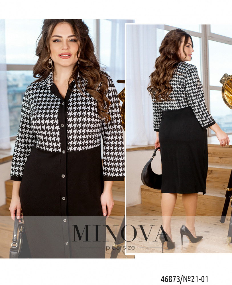 Стильное платье-рубашка с воротником разнообразит ваши рабочие будни и идеально впишется в ваш офисный стиль. Модель с лаконичным однотонным подолом и контрастным выразительным верхом создает имитацию делового костюма. Платье застегивается на ряд пуговиц на планке спереди.