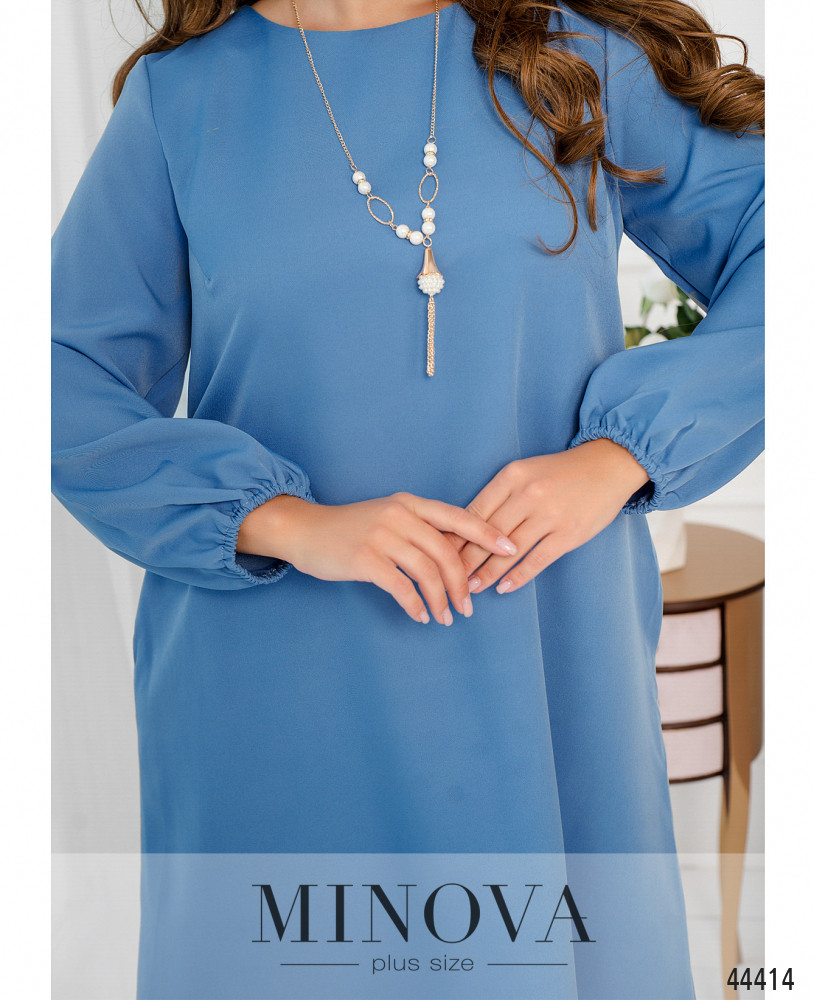 Элегантное и минималистичное платье с полукруглым широким вырезом горловины. По бокам - карманы в шве. Рукав свободный, на запястье присобран резинкой, без манжета. Застёжек нет. На груди диагональные вытачки. Украшение входит в комплект.