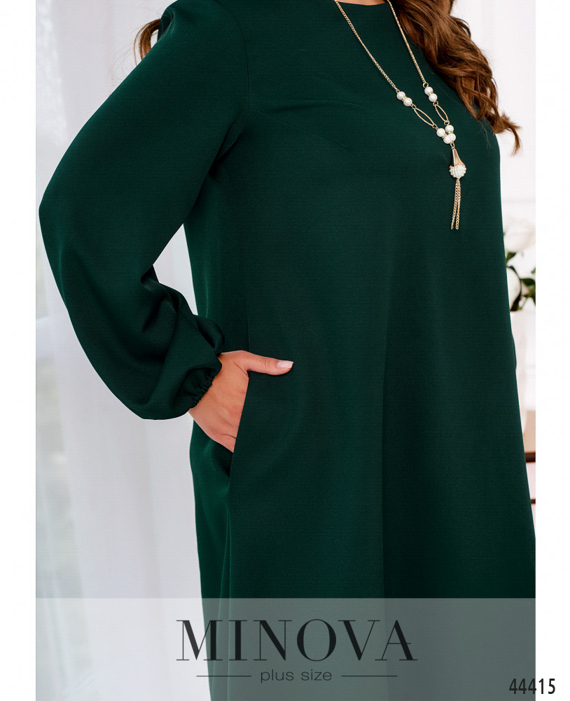 Элегантное и минималистичное платье с полукруглым широким вырезом горловины. По бокам - карманы в шве. Рукав свободный, на запястье присобран резинкой, без манжета. Застёжек нет. На груди диагональные вытачки. Украшение входит в комплект.