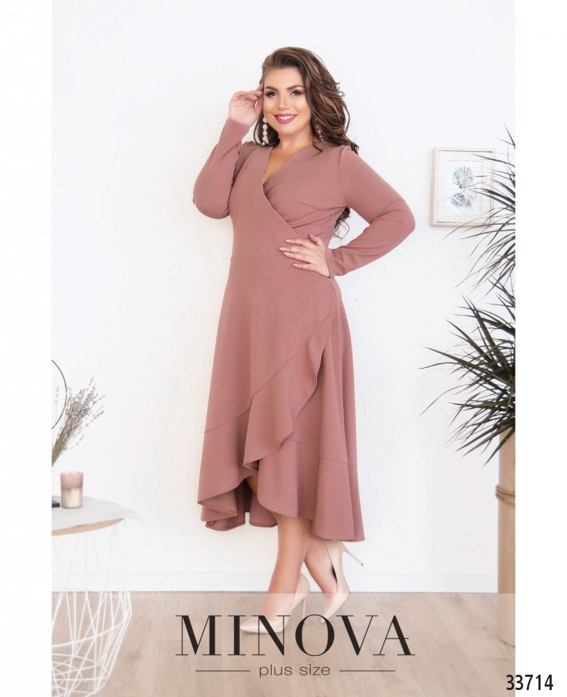 Очень элегантное, очень изящное платье батал от Minova словно специально создано для танцев и для ощущения себя настоящей богиней! Платье пошито на запАх, декольте не очень глубокое, на левом бедре подшито и ниспадает на другую сторону крупными складками, которые развеваются во время ходьбы. Приталенный силуэт и расклешённый подол создадут эффект «песочных часов» на любой фигуре, даже на «прямоугольной». Застёжка-молния расположена на спине, до талии; на груди – вытачки, карманы отсутствуют. Рукава полной длины, манжетов нет. Материал мягкий, слегка тянется, очень приятен к телу. Носить рекомендуется с туфельками или босоножками на каблуках или высокой платформе.