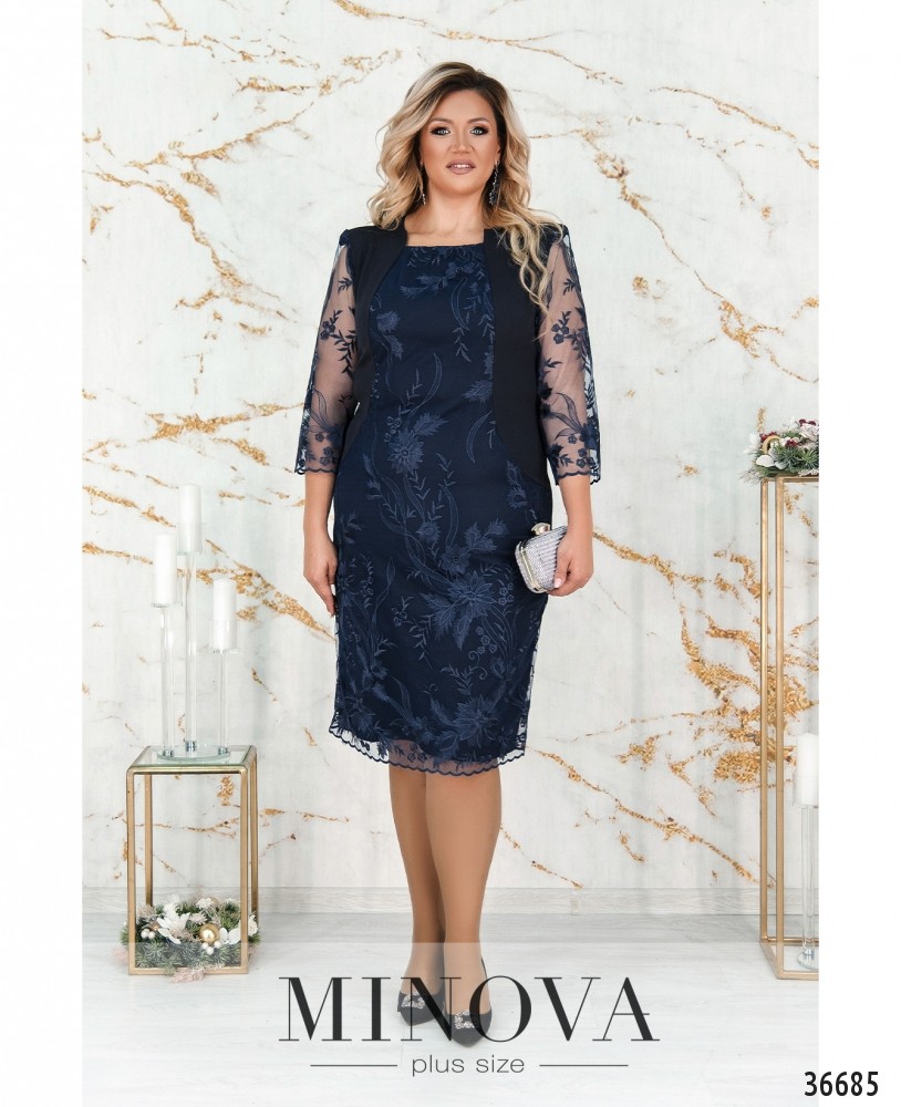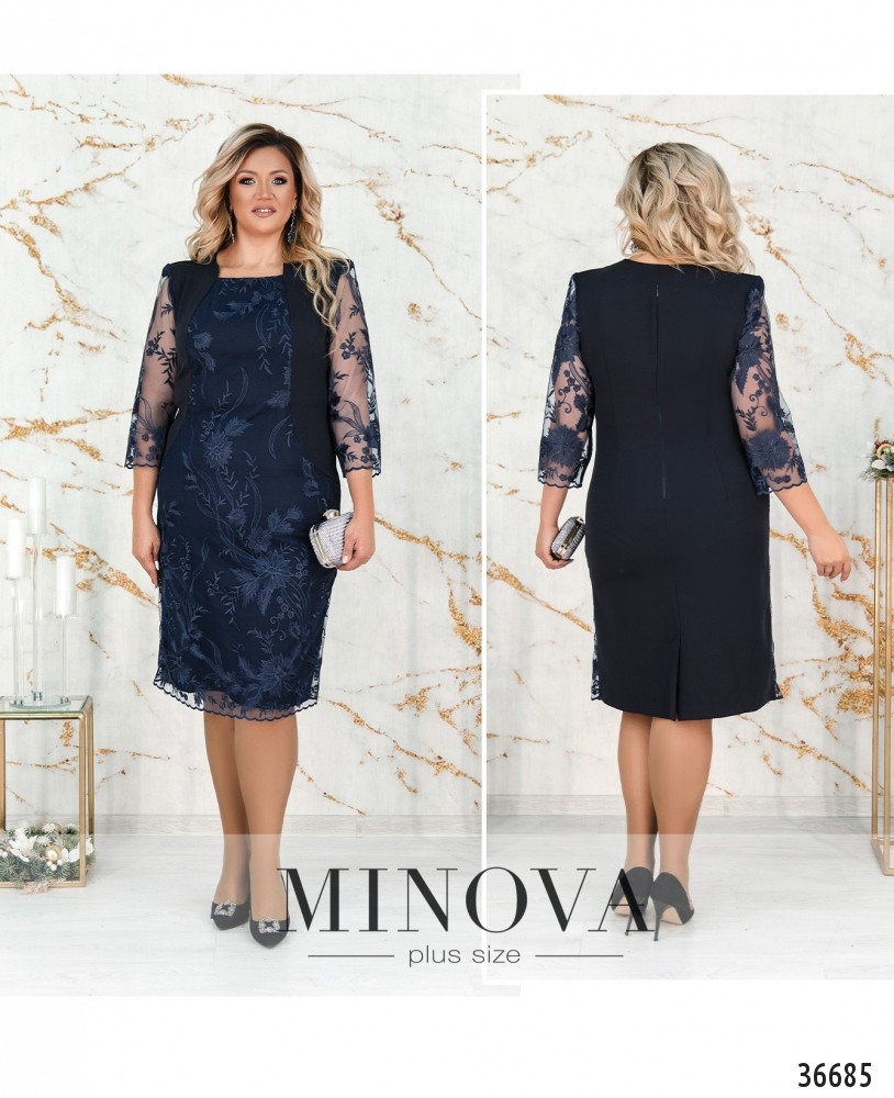 Приталенное платье батал из свежей коллекции женской одежды больших размеров от Minova покорит ваше сердце с первого взгляда своим оригинальным фасоном. Платье А-силуэта, с полукруглым вырезом горловины, без карманов и застёжек. На плечи изнутри подшиты накладки, которые делают линию плеч более ровной. Платье двуслойное спереди: от горловины до подола подшит второй слой из сеточки с цветочным узором. Визуально платье выглядит, словно на него накинута жилетка из гладкой ткани. Спинка полностью гладкая. Рукава длиной ¾. Платье будет хорошо сочетаться с однотонной обувью на каблуке любой высоты.