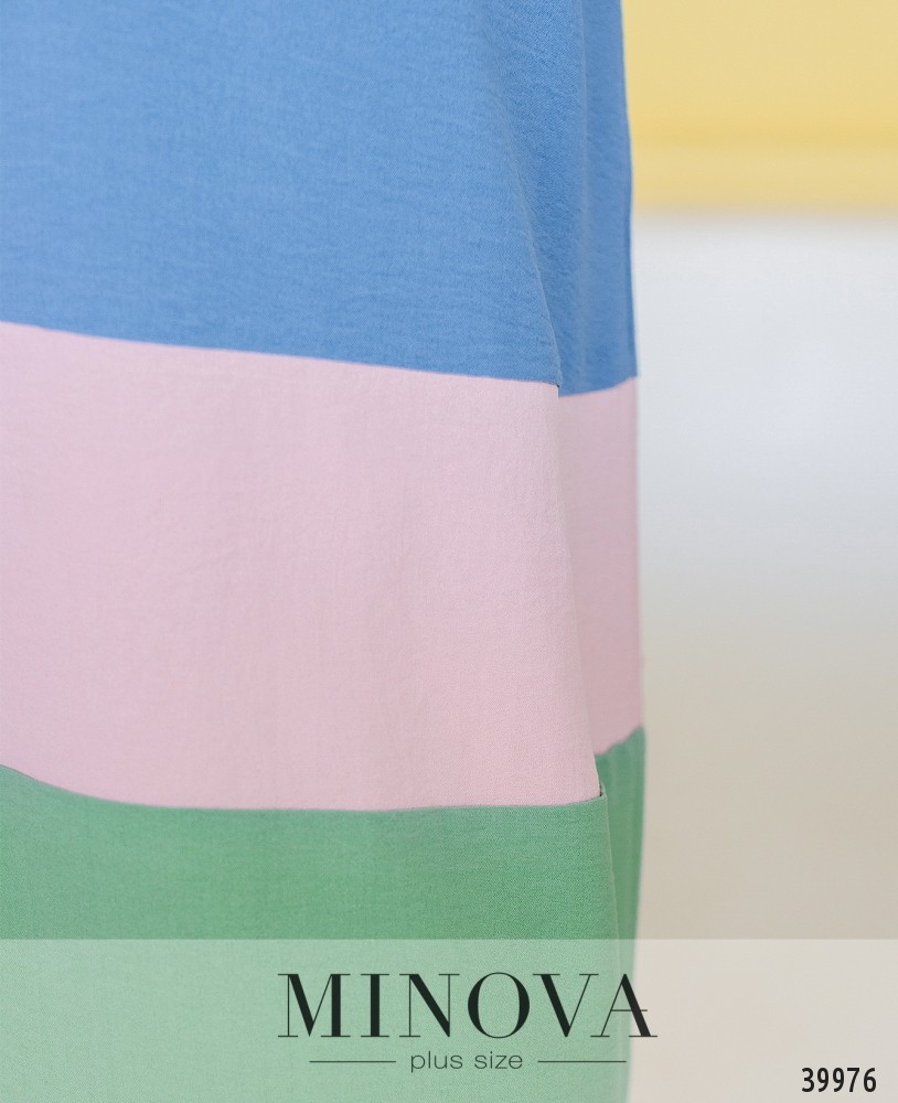 Лёгкое и стильное платье батал с врезными карманами по бокам, рукава короткие, с подворотами, вырез горловины неглубокий, на груди вытачки, застёжек нет.