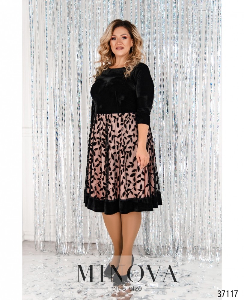 Думаете, что бы надеть на День рождения подруги? А может, не можете выбрать наряд на свой собственный праздник? Обратите внимание на очень привлекательную модель платья батал из свежего каталога Minova. Платье приталенное, с расклешённым подолом. Верх из нежной бархатистой ткани, изнутри гладкой, низ – двуслойный, с мягкой подкладкой, сверху декорирован сеточкой с растительным узором из такого же бархатного материала. Рукава без манжет, вырез горловины широкий, довольно глубокий, полукруглый, карманов и застёжек нет. В каталоге представлены модели с яркими, тёмными и пастельными оттенками подкладки подола. Вы можете выбрать тот, который идеально впишется именно в ваш образ!