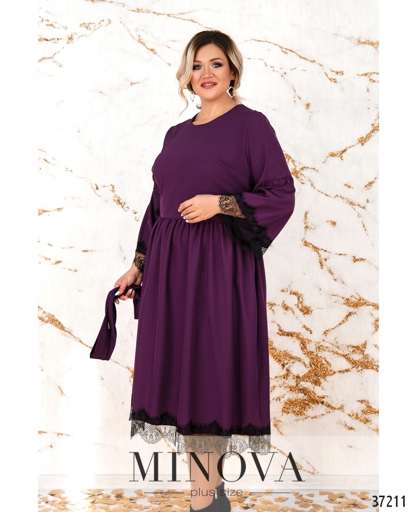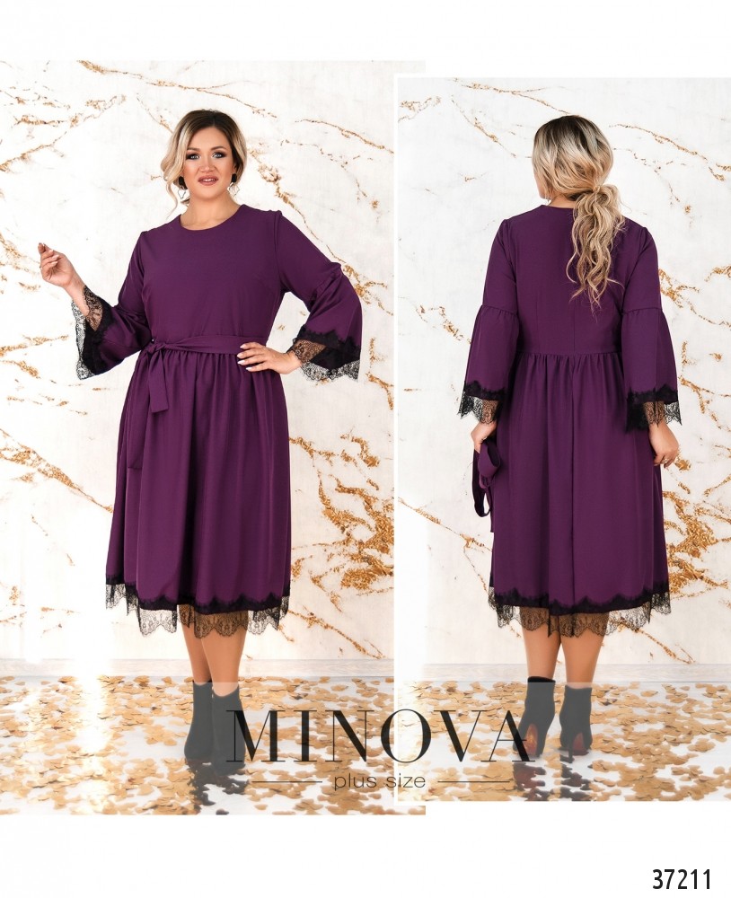 На первый взгляд довольно простое, но на самом деле очень милое и привлекательное платье А-силуэта из свежего каталога платьев батал от Minova. Платье с подшитым к лифу подолом, подол расклешён и ниспадает мягкими складками. Ничего лишнего, кроме очаровательного кружева, которое украшает подол и рукава. Кружевные вставки делают этот наряд неординарным и свежим. К платью прилагается пояс в тон и изящная подвеска на длинной цепочке. Застёгивается на вшитую по спинке змейку, карманов нет, на груди – небольшие вытачки. Однотонная глубокая расцветка даёт возможность вписать это платье в твой базовый гардероб! Украшение входит в комплект.