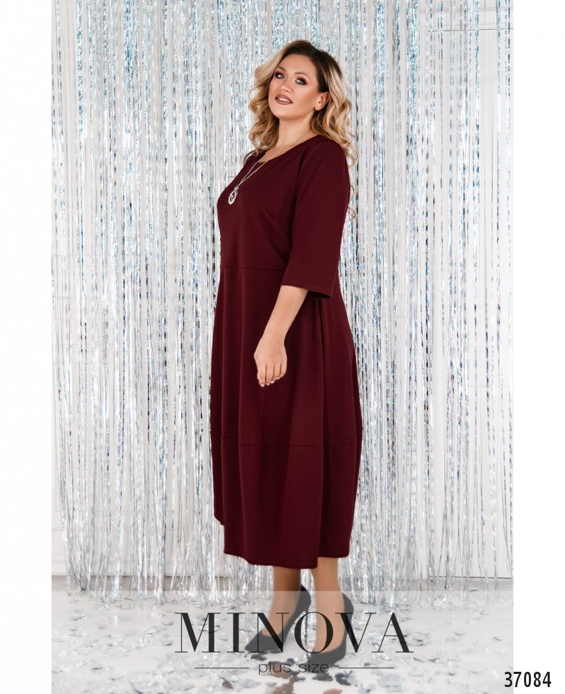 Привлекательное однотонное платье батал А-силуэта представлен в новой коллекции женской одежды батал от Minova. Платье из мягкой ткани. Рукава длиной ¾, без манжет. Вырез горловины полукруглый, неглубокий, подол подшит к лифу, а к низу подола подшит широкий отрез ткани, ещё более расширяющий его. Карманы отсутствуют, застёжка – вшитая по спинке змейка. Спереди на подоле – ряд декоративных пуговиц, на груди – небольшие вытачки. На плечах изнутри подшиты мягкие накладки. Платье можно смело вписать в свой базовый гардероб, дополняя его каждый раз новыми украшениями и выбирая разную обувь. Украшение входит в комплект.