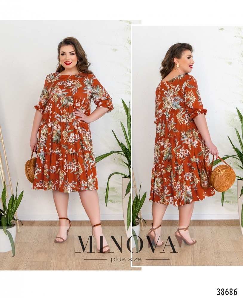 56 р-р: длина платья 106см, длина рукава от плечевого шва 43см, обхват рукава 44см, ОГ - 116см, ОТ -124см, ОБ -132см.