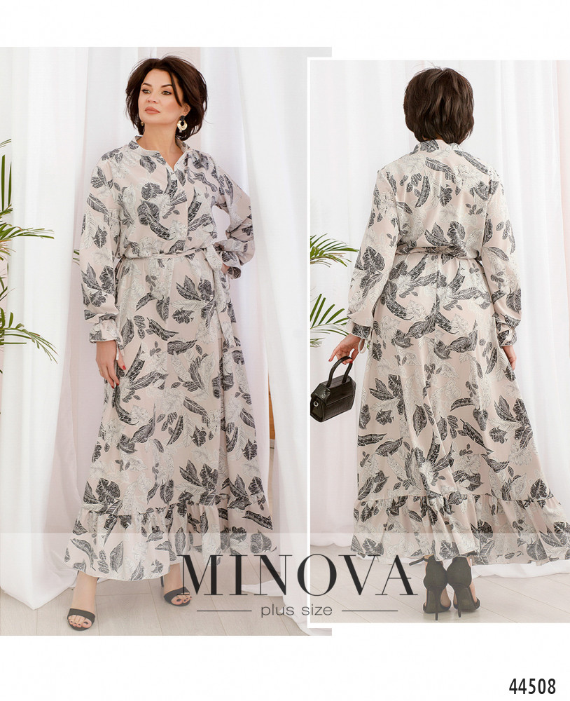 56 р-р: длина платья 147см, длина рукава от плечевого шва 62см, обхват рукава 39см, ОГ - 114см, ОТ -112см, ОБ -134см.