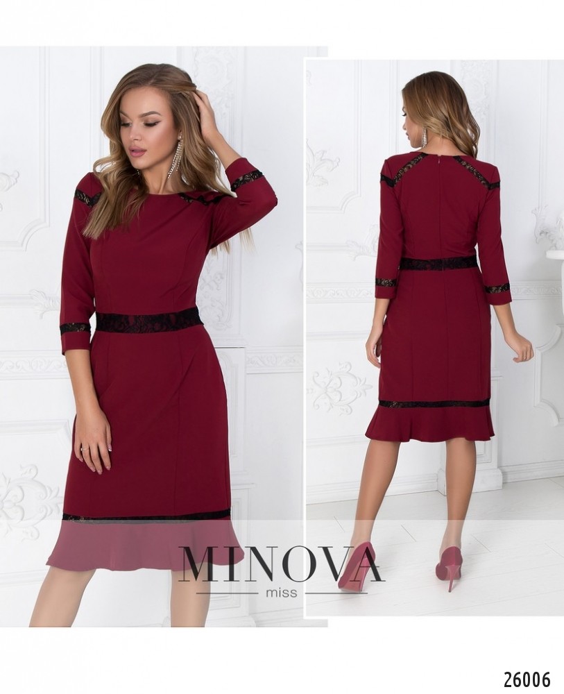 Романтичное платье с кружевом и воланами – для нежного и утонченного образа. Платье создает силуэт песочных часов благодаря выточкам по фигуре. Талия, подол, рукава и плечи подчеркнуты изысканным кружевом. Подол оформлен воланами.