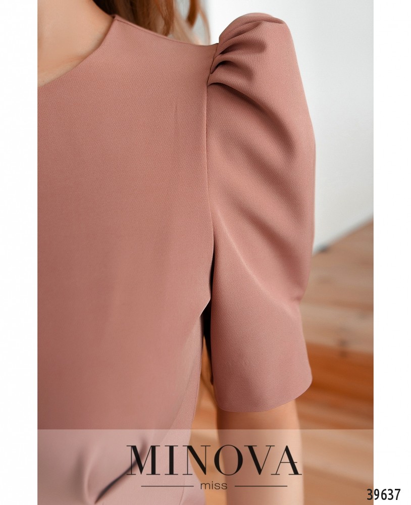Очаровательное минималистичное платье без карманов, с продольными вытачками спереди и по спинке, что делает силуэт приталенным. Рукава-фонарики, без манжет, с декоративными складками. Застёжка - вшитая по спинке молния. При подборе размера стоит учитывать, что бёдра должны ложиться свободно.