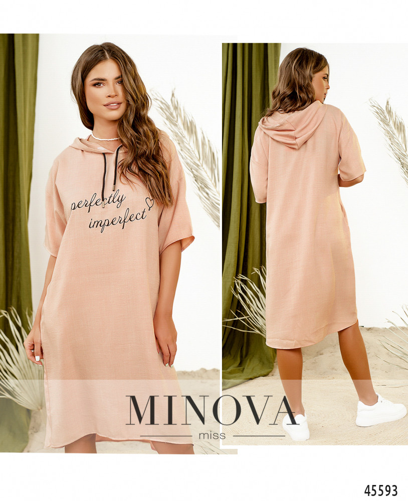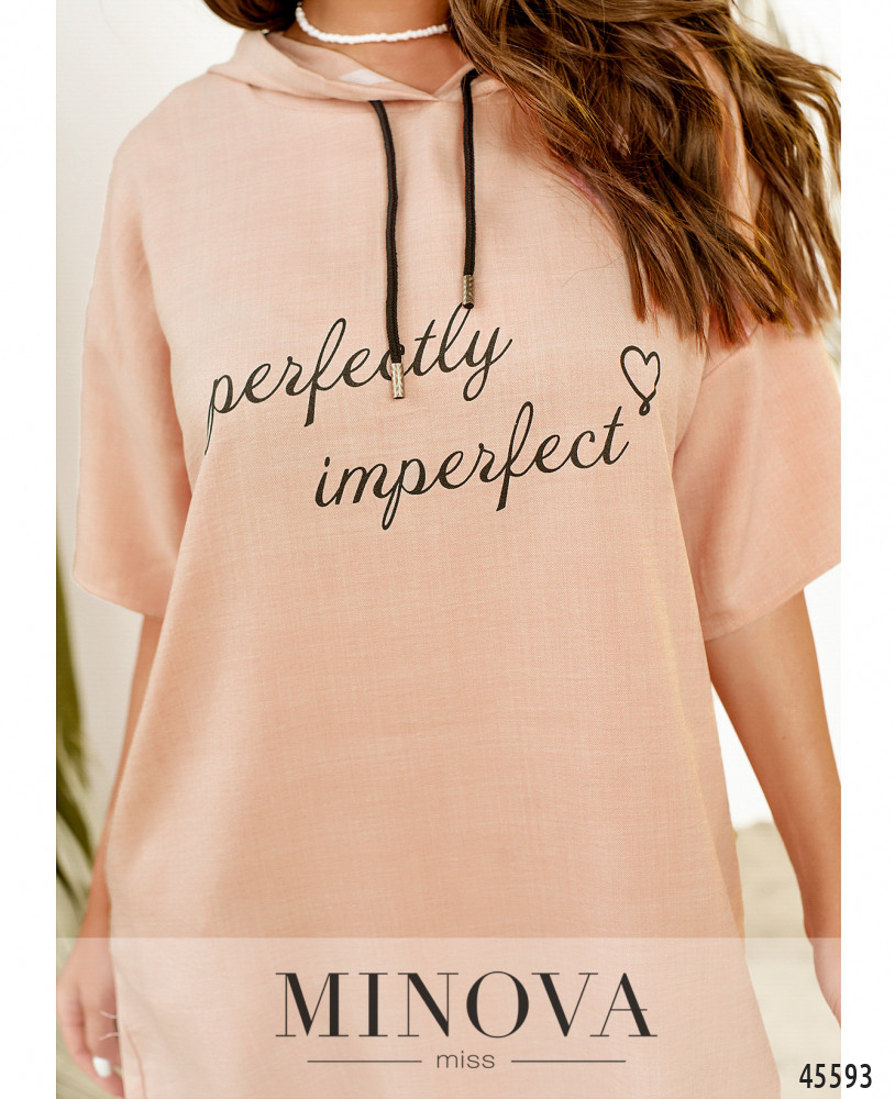 Лаконичное платье в спортивном стиле отличается универсальностью, удобством и практичностью. Эта модель дополнена декоративным принтом на груди, капюшоном на кулиске, короткими рукавами с приспущенной линией плеч и карманами в боковых швах Пояс НЕ входит в комплект.