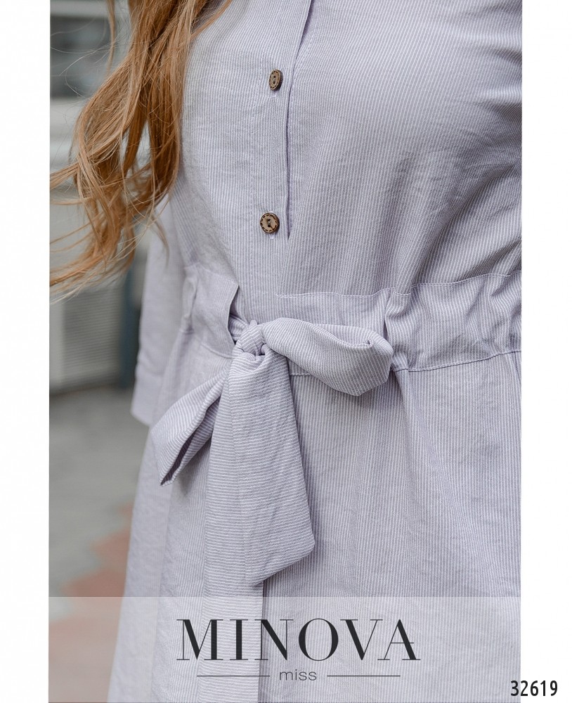 Нежные пастельные тона – то что нужно для романтичных натур или для тех девушек, которые ищут что-то универсальное для создания капсульного гардероба. Представленная модель платья из новой коллекции Minova как раз подходит для этих целей. Платье по фасону напоминает рубашку, особенно если не затягивать вшитый на талии пояс. Но зато если затянуть, можно удачно подчеркнуть талию и присобрать подол. Пуговицы – до низу подола, воротник-стоечка, рукава застёгиваются на манжетах, а для более вольного образа их можно укоротить их, отвернув и закрепив лентой на пуговку. Ткань не просвечивает и не тянется, но очень тонкая и лёгкая. Платье будет хорошо смотреться на девушках с любым типом фигуры. Обувь допустима и спортивная, и классическая.