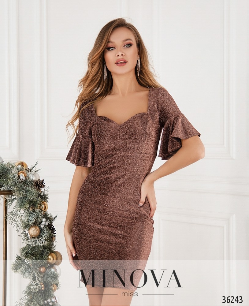 Очаровательное женственное платье для твоего великолепного праздника! Minova представляет модель из мягкой ткани с люрексом, который переливается при электрическом освещении. Изнутри ткань мягкая. Вырез горловины – фигурное каре, от него – две продольные вытачки на груди. Рукава до середины локтя, с оборками. Карманов нет, застёжка – вшитая по спинке змейка. Длина – до колена. Платье будет удачно смотреться на фигуре типа «песочные часы» или «груша». Носить рекомендуем с туфельками на высоком каблуке или танкетке.