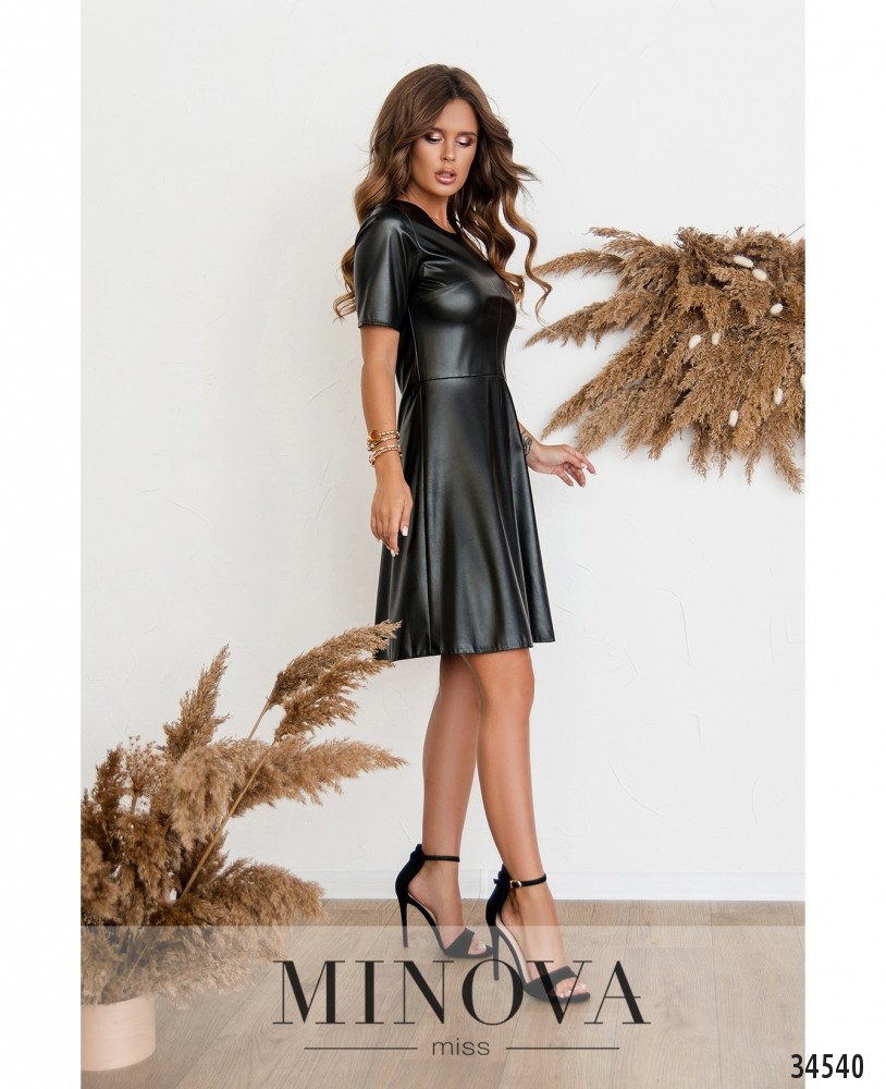 Minova любит удивлять и очаровывать – в новой коллекции представлены минималистичные платья для смелых девушек, выполненные из ткани «под латекс»: блестящие, гладкие, но изнутри мягкие. Платье А-силуэта, подол подшит к лифу и расклешён, лиф разделён швом посередине, на груди – небольшие вытачки. Рукава короткие, чуть выше локтя. Вырез горловины полукруглый, застёжка – вшитая по спинке змейка. Карманы отсутствуют. Замечательный вариант для коктейльной вечеринки или другой неформальной обстановки, можете выбрать яркие аксессуары с принтом и удобную обувь, предпочтительно на каблуке.